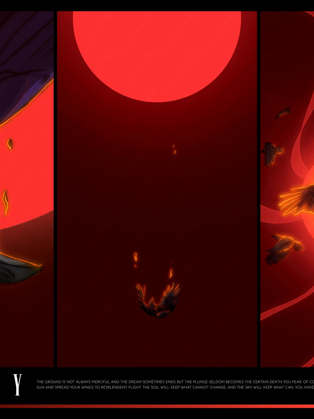 the ground is not always merciful and the dream sometimes ends but the plunge seldom becomes the certain death you fear. of course the drop can destroy you but it can also split you open to the sun and spread your wings to resplendent flight. the soil will keep what cannot change, and the sky will keep what can. you have a choice. you fall, or you open. you spiral, or you rewrite gravity.